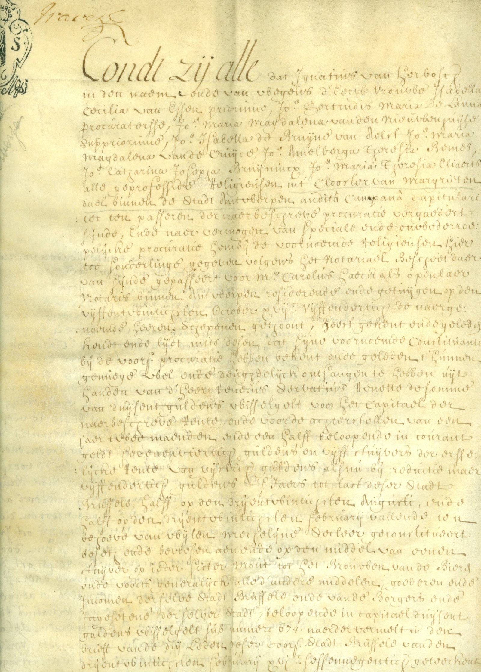 Clooster van Margrietendal Antwerpen 30 april 1736