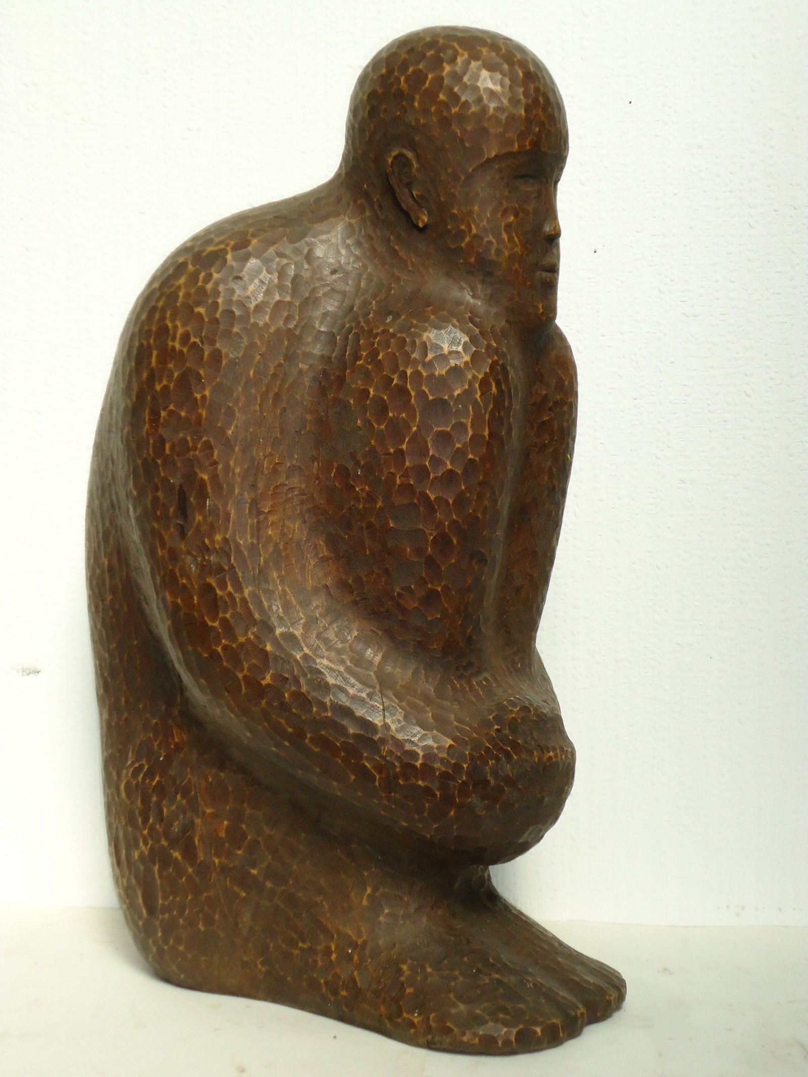 Zeer intens bewerkt oppervlak, fijn gemarteleerde afwerking. Gehurkte figuur, 55 cm hoogte, gesigneerd werk en enig exemplaar. Goede staat, normale sporen van leeftijd