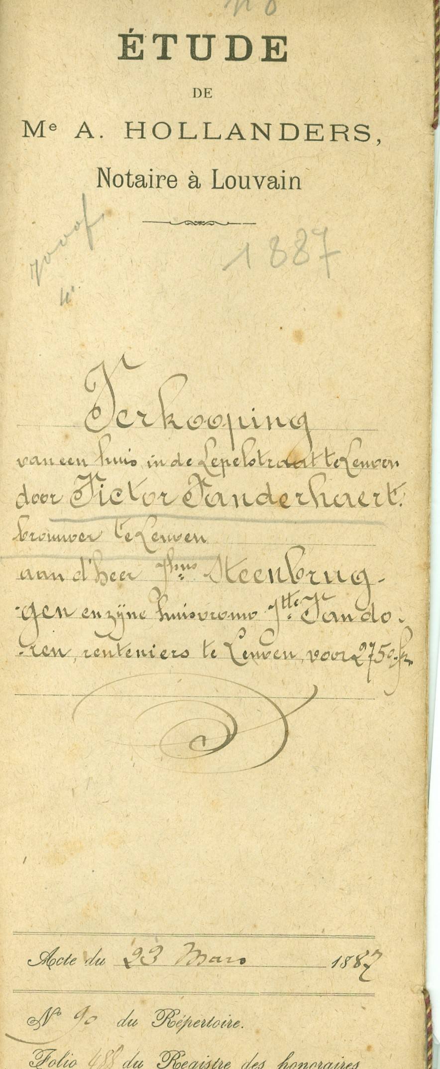 Verkooping Mr. A. Hollanders 1887